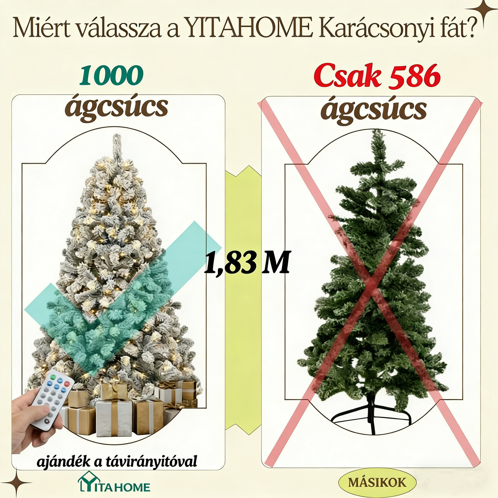 • Könnyű összeállítás és tárolás – Egyszerű felépítési folyamat, pár perc alatt készen áll a díszítésre; szelektív szerkezetű, kis helyet foglal el a tárolás során.
